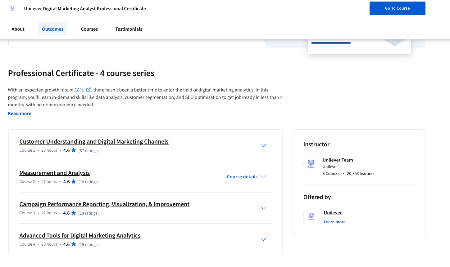 Mỗi Professional certificate sẽ gồm các Course series (giao động từ 4-8 khóa nhỏ), trong từng course sẽ chia ra các module nhỏ hơn (thường 4-6 module).