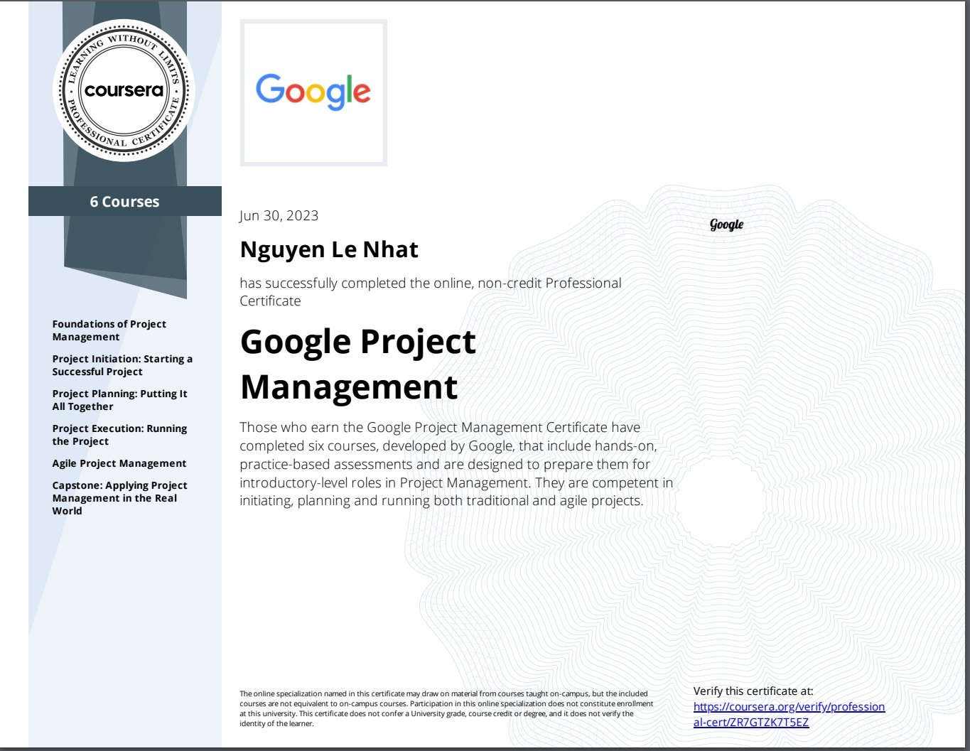 - certificate cuối khóa để thêm vào profile linkedln của bản thân