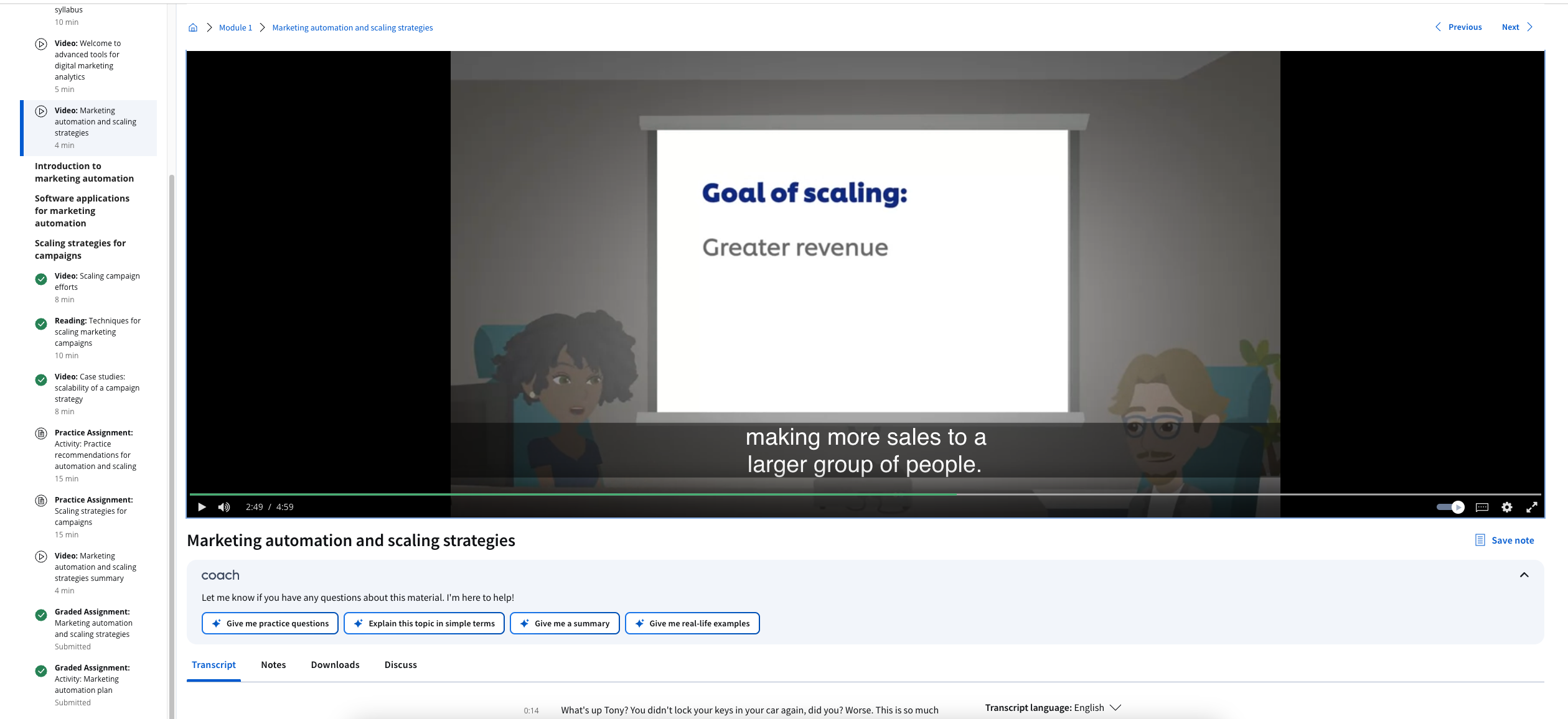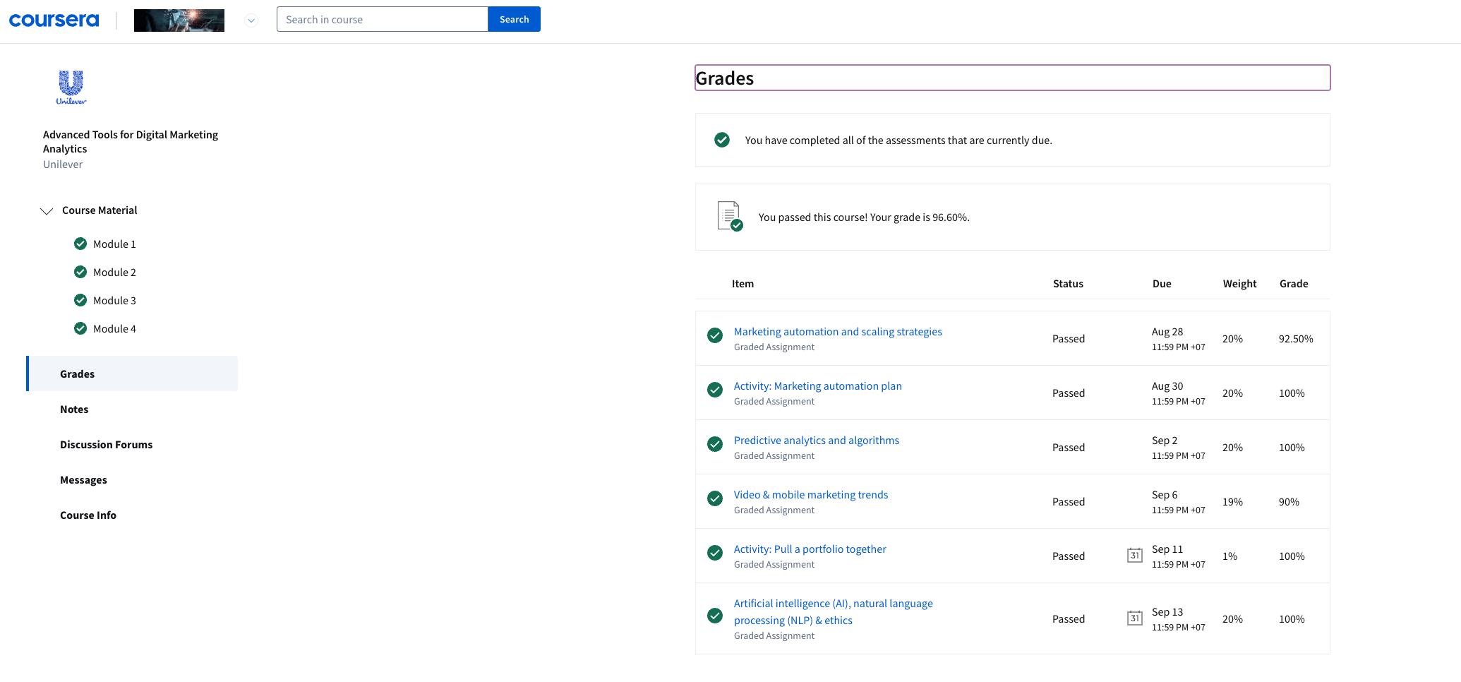 - Bài tập (assignment): các phần Graded Assignment là bắt buộc, cần đạt hơn 80% điểm mới đủ điều kiện pass