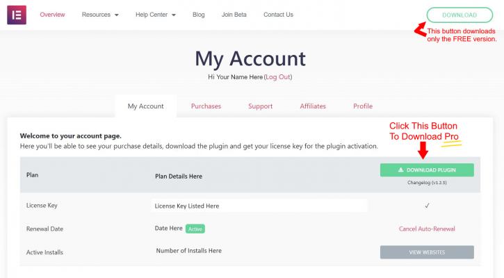 - Sau khi mua Elementor Pro , hãy truy cập my.elementor.com