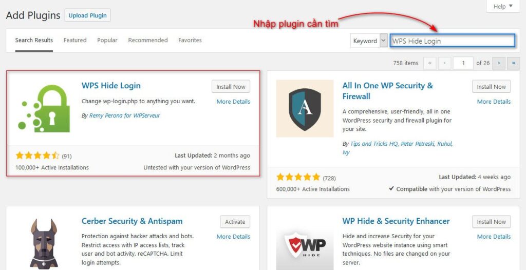 Nhập tên plugin muốn cài đặt vào ô tìm kiếm.