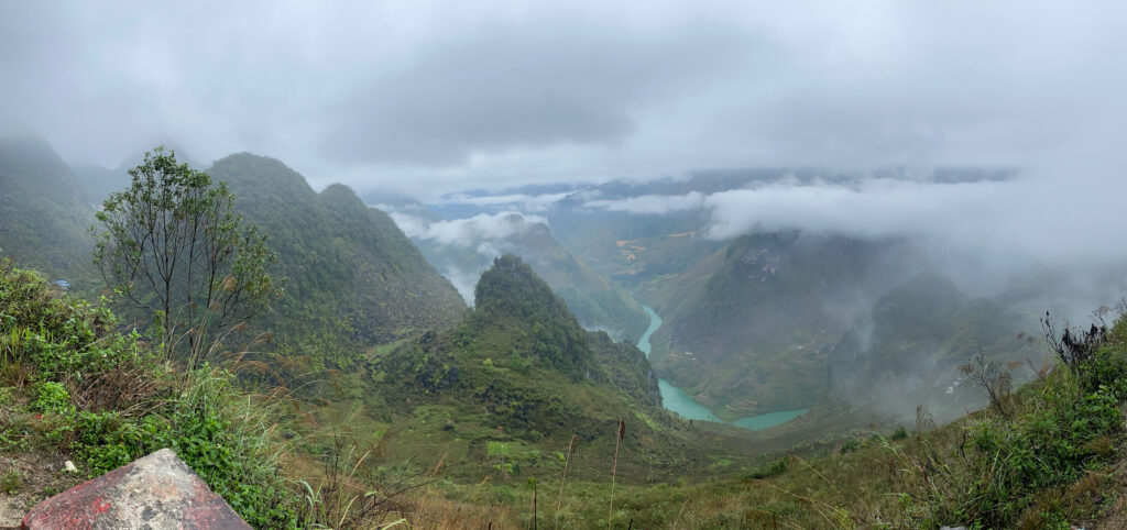 Từ Mã Pí Lèng ôm đèo sẽ xuống tới thị trấn Mèo Vạc, tuy nhiên bạn sẽ ghé qua sông Nho Quế trước khi quay lại thị trấn sau, xuống tới đây mình mới biết chỗ này là địa điểm khai thác của thuỷ điện chỗ này, bạn sẽ đi 1 con thuyền học sông Nho Quế để tham quan & chụp hình.