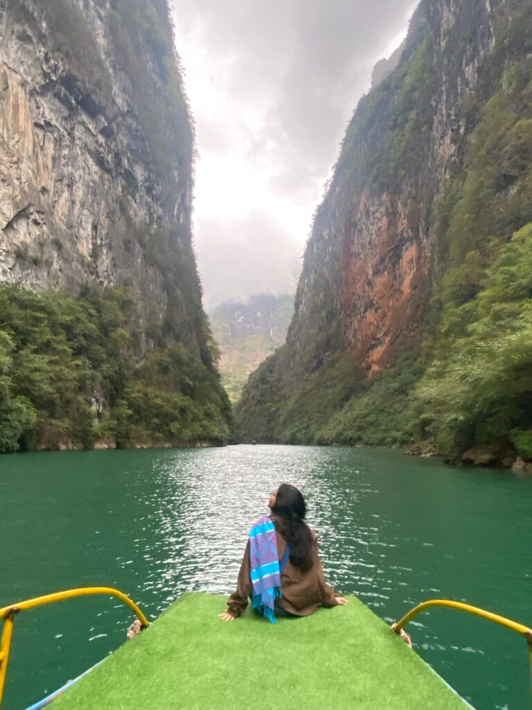 - Trước khi tới thị trấn Mèo Vạc nghỉ ngơi thì tụi mình ghé sông Nho Quế
