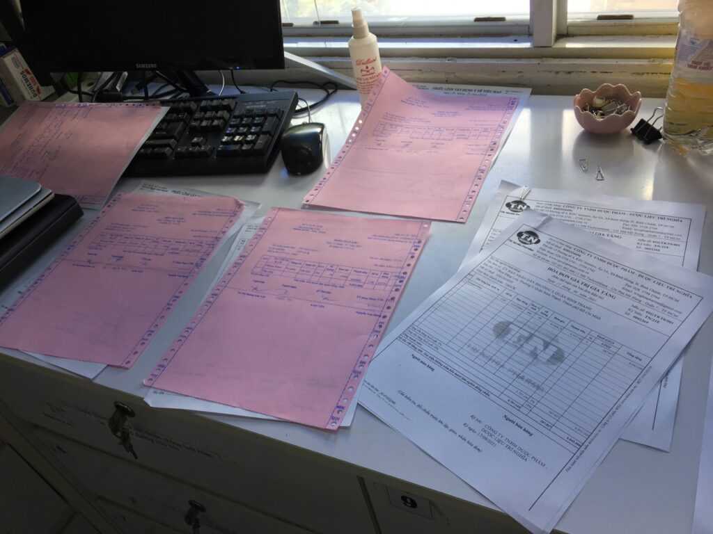 Đây cũng là 1 công việc khá quan trọng, tuy không nặng về sức như các công việc ở trên nhưng cần sự tập trung và tỉ mỉ; chủ yếu là hỗ trợ các anh chị phụ trách việc kiểm tra các hóa đơn, chứng từ nhập-xuất hàng coi thiếu đủ ra sao, nhập hệ thống nếu cần; mà các bạn biết là vì thời gian gấp rút nên rất nhiều giấy tờ chưa có thời gian được xử lí, nên để làm hết mớ giấy tờ này cũng tốn rất nhiều thời gian.