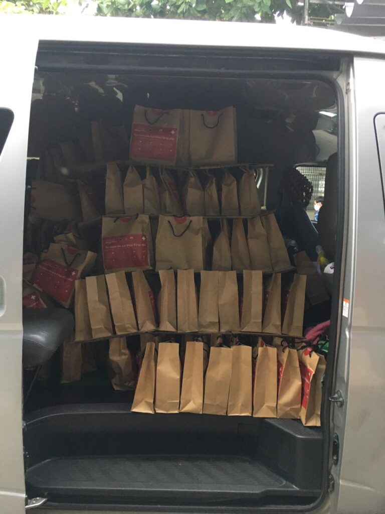 - Sau khi đã hoàn tất việc phân chia thuốc, bắt đầu mặc bảo hộ, giắt theo chai cồn, cho các túi thuốc lên xe 16 chỗ, chuẩn bị giấy tờ; và đi tới các KCL để giao cho các BS trực ở đó; thường thì 1 chuyến đi sẽ mất nguyên 1 buổi chứ không nhanh.