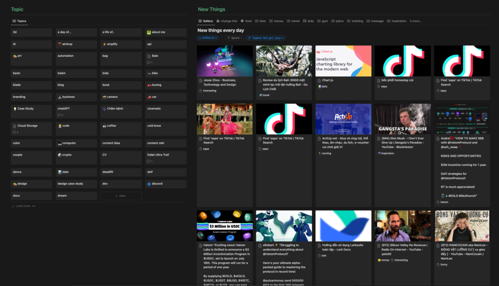 Hiện tại, mình đang sử dụng kết hợp cả Notion & Obsidian, hệ thống bên Notion sử dụng để capture thông tin là chính, bên Obsidian sẽ là những kiến thức chuyên sâu hơn, cần có sự liên kết hơn & mang tính ứng dụng cao hơn.