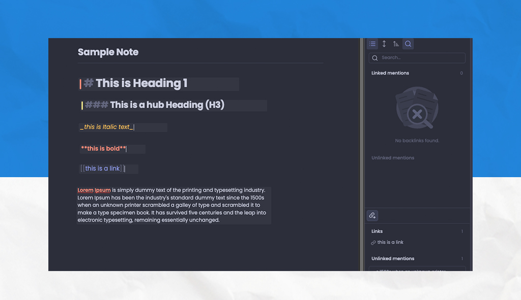 - sử dụng tên file md cần link để tạo liên kết backlink