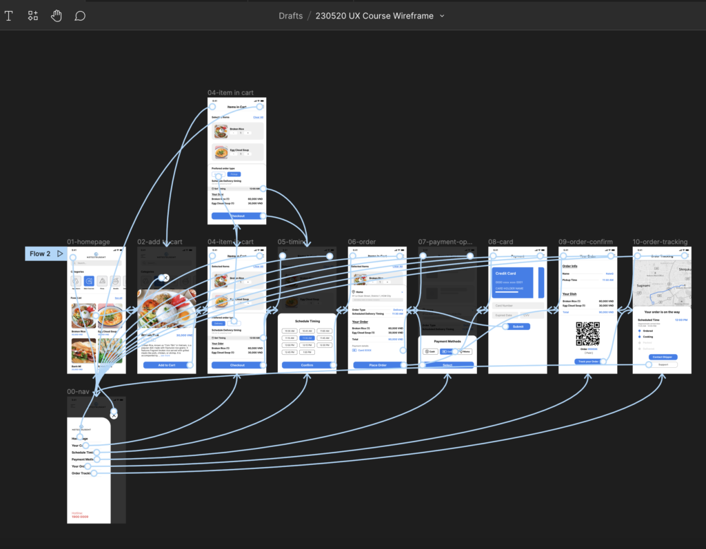 - Course 3: học về Wireframe, làm sao để lên wireframe cho 1 design (app/web); cách lên Low-fidelity Prototype (draft khung sơ bộ của app)