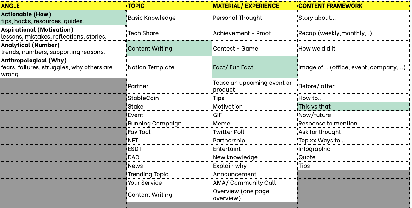 Giờ bạn đã có 1 bảng content topic dựa trên AAAA Framework cho riêng mình rồi, tuy nhiên, bí mật thú vị nằm ở cách bạn sử dụng nó.